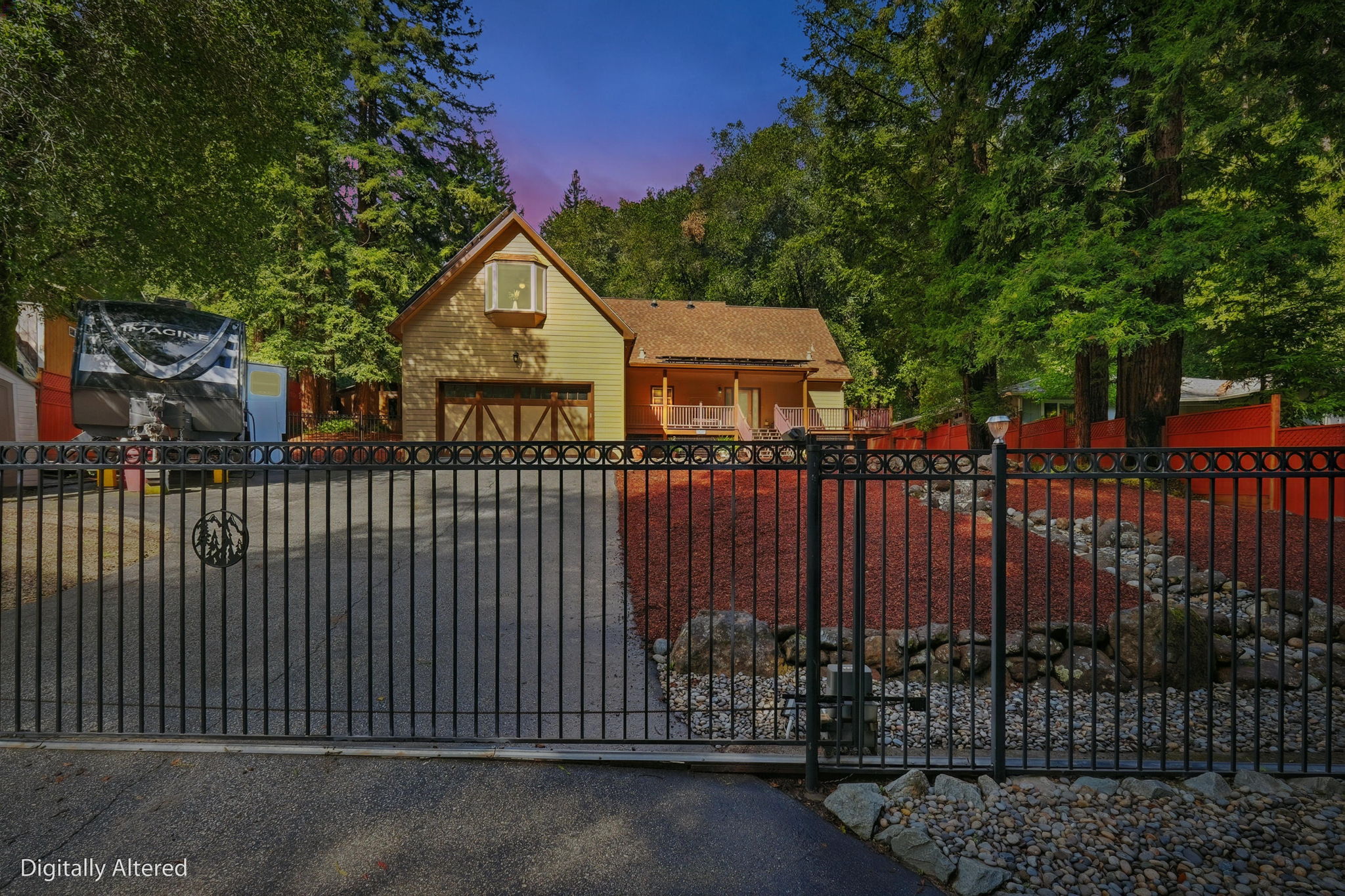 This two-bedroom, one-bathroom residence offers 748 square feet of interior living space situated on a 5,750-square-foot lot in Boulder Creek. The home features vaulted ceilings with exposed wood beams and a wood-burning stove in the primary living area. Large windows and glass doors provide natural light and direct access to a spacious wooden deck, suitable for outdoor dining and forest views. The property is surrounded by mature redwood trees, providing a private environment within the Santa Cruz Mountains. Located in the San Lorenzo Valley Unified School District, the home is near Boulder Creek Elementary and San Lorenzo Valley High School. The galley-style kitchen and functional floor plan optimize the compact footprint. Residents benefit from proximity to downtown Boulder Creek and local parks, combining a secluded atmosphere with access to essential services and mountain recreation. The lot includes dedicated off-street parking and level access to the entryway.